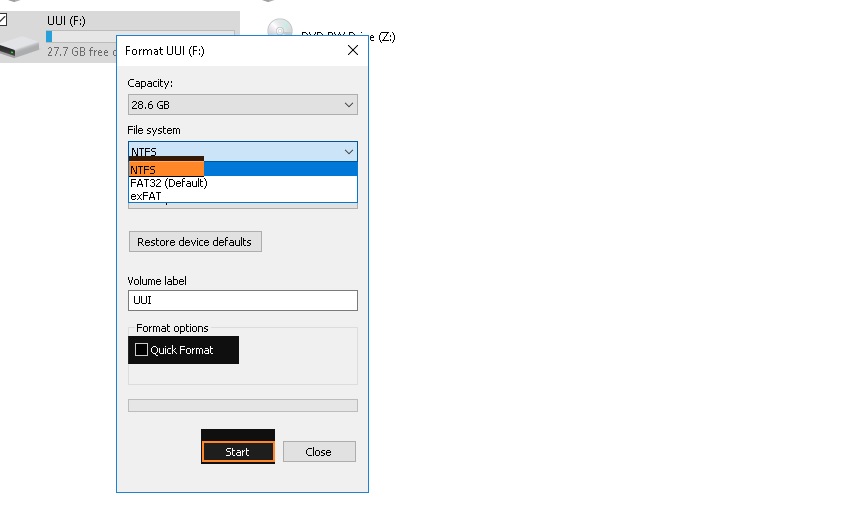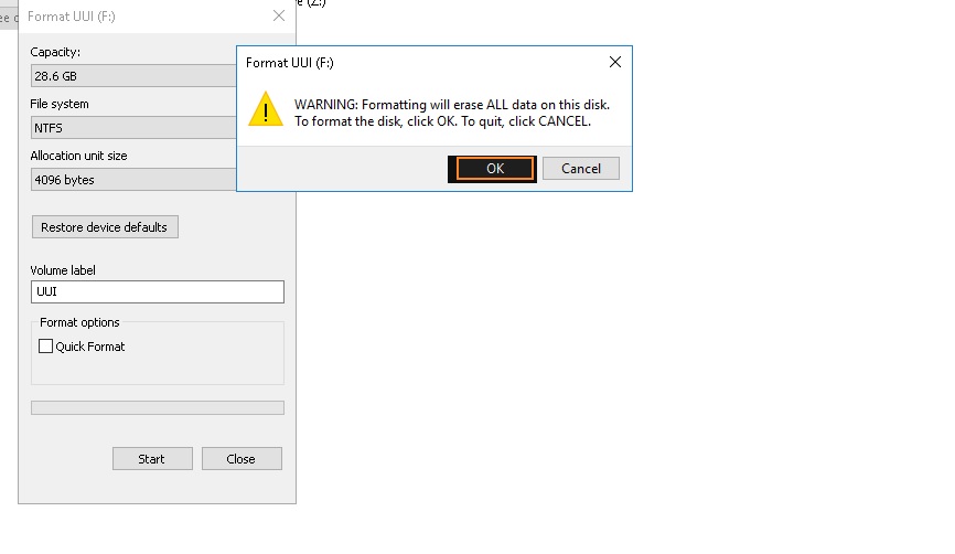 5. Then click the Start button. Now your pen drive’s file system will change.