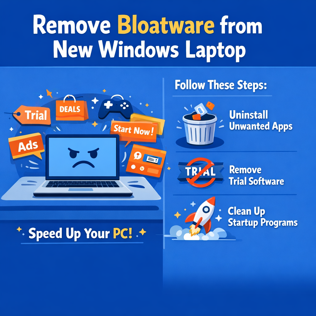 Get rid of bloatware on your new Windows laptop. Improve speed and storage with our comprehensive removal guide.